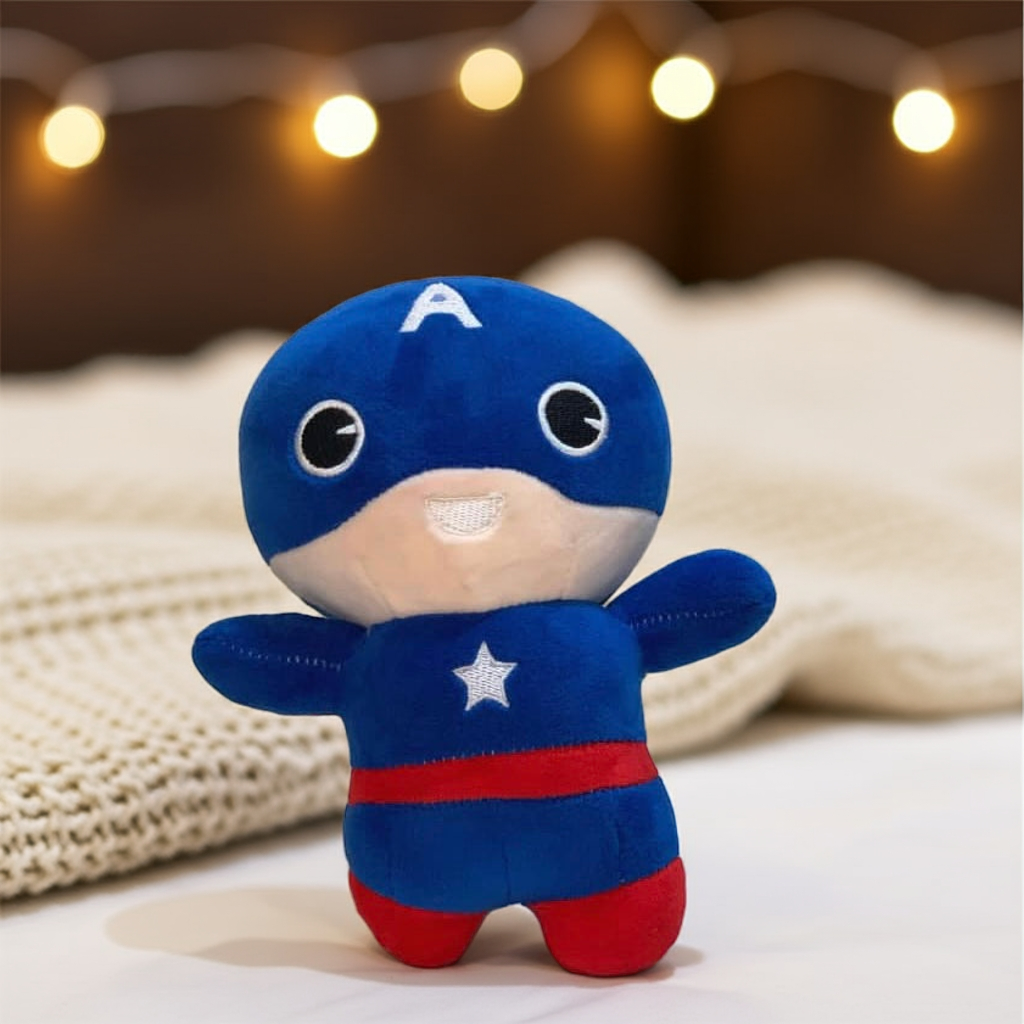Suit up with the ultimate cuddle hero! This Captain America Plush Toy brings the iconic star-spangled superhero right into your arms. Crafted with ultra-soft plush fabric and detailed with Captain America’s classic blue suit, signature star emblem, and trusty shield, this plush is ready to defend your hugs from boredom and bring heroic fun to any playtime.