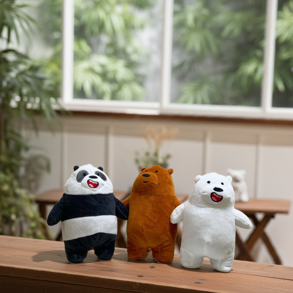 We Bare Bears Plush Trio – Ice Bear, Panda & Grizz | Soft Collectible Cartoon Set